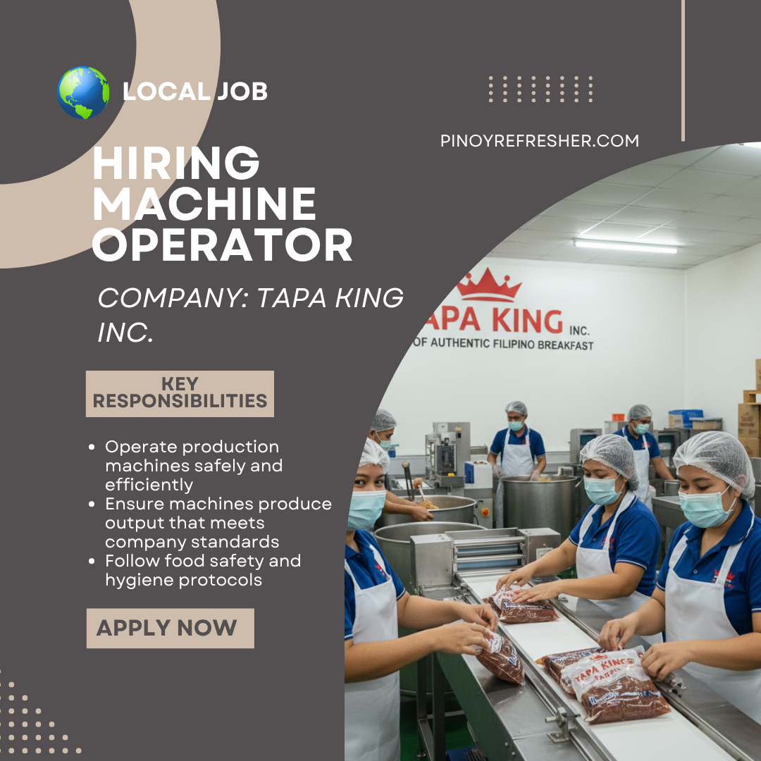 🍽️ Now Hiring: Machine Operator at Tapa King Inc. (Pasig City)