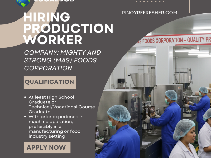 Be part of a proudly Filipino food brand that continues to grow nationwide. If you’re reliable, hardworking, and eager to learn, this could be the start of your long-term career in food production.