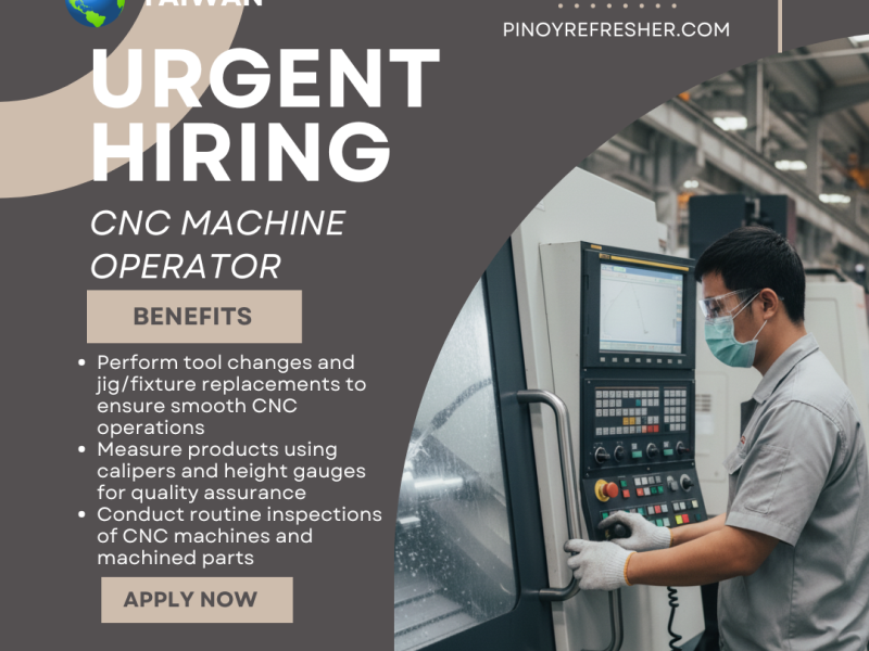 Are you seeking an exciting opportunity to work abroad? JS Contractor Inc. is now hiring qualified applicants for the position of Machine Operator in Taiwan. This is your chance to gain international experience and grow professionally in a dynamic industrial environment.