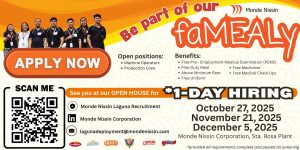 Monde Nissin – Sta. Rosa will be holding a One-Day Hiring Event for aspiring job seekers!