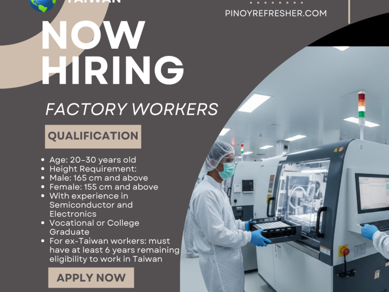Looking for an exciting career opportunity abroad? Pegatron Corporation, a leading technology company in Taiwan, is now hiring Operators at their Taoyuan, Taiwan facility. This is your chance to work with a reputable company that values fair labor practices and employee welfare.