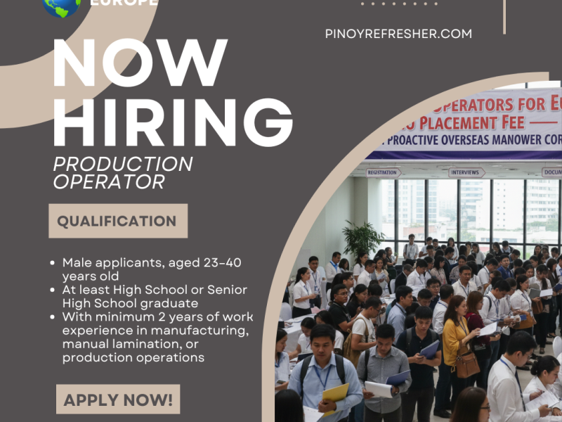 Proactive Overseas Manpower Corporation is a POEA-licensed recruitment agency based in Makati City, Philippines. The agency is dedicated to connecting qualified Filipino workers with reputable employers worldwide. Known for integrity, professionalism, and transparency, Proactive ensures that all applicants undergo a safe, legitimate, and cost-free recruitment process leading to stable overseas employment.