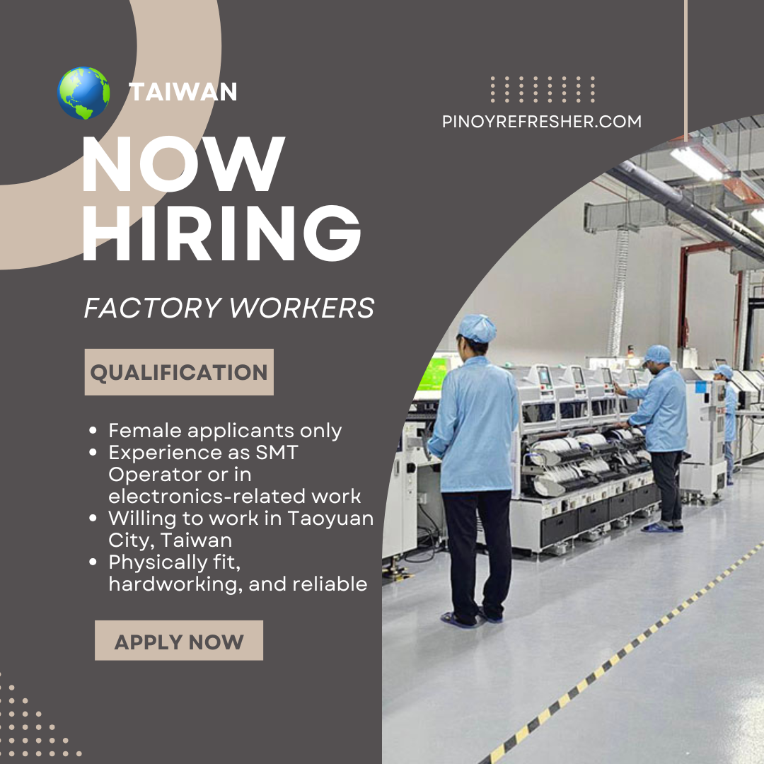 🇹🇼 Now Hiring: Female Factory Workers – Compuware Technology Inc., TaiwanApply via Melakom Global Services Inc. – DMW Licensed Agency Are you looking for an