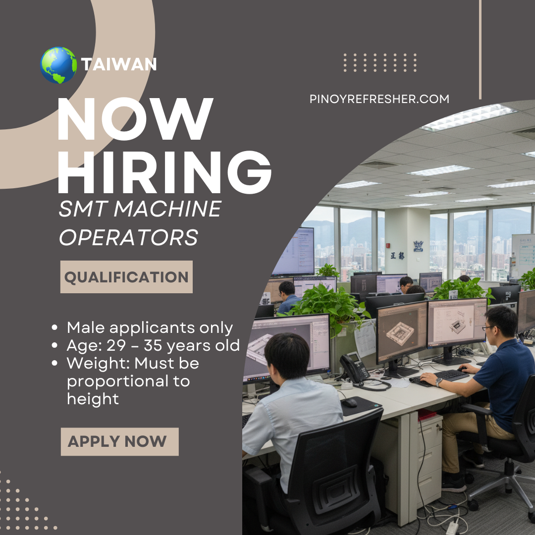 URGENT HIRING BOUND TO TAIWAN 🔊 FIRST TIMER/ EX -TAIWAN 🔊 BASIC SALARY: NT$ 27,470 (PHP 49,000+) JOB POSITION: 📌CUTTING MACHINE OPERATOR (ELECTRONICS) 📌GRINDING MACHINE
