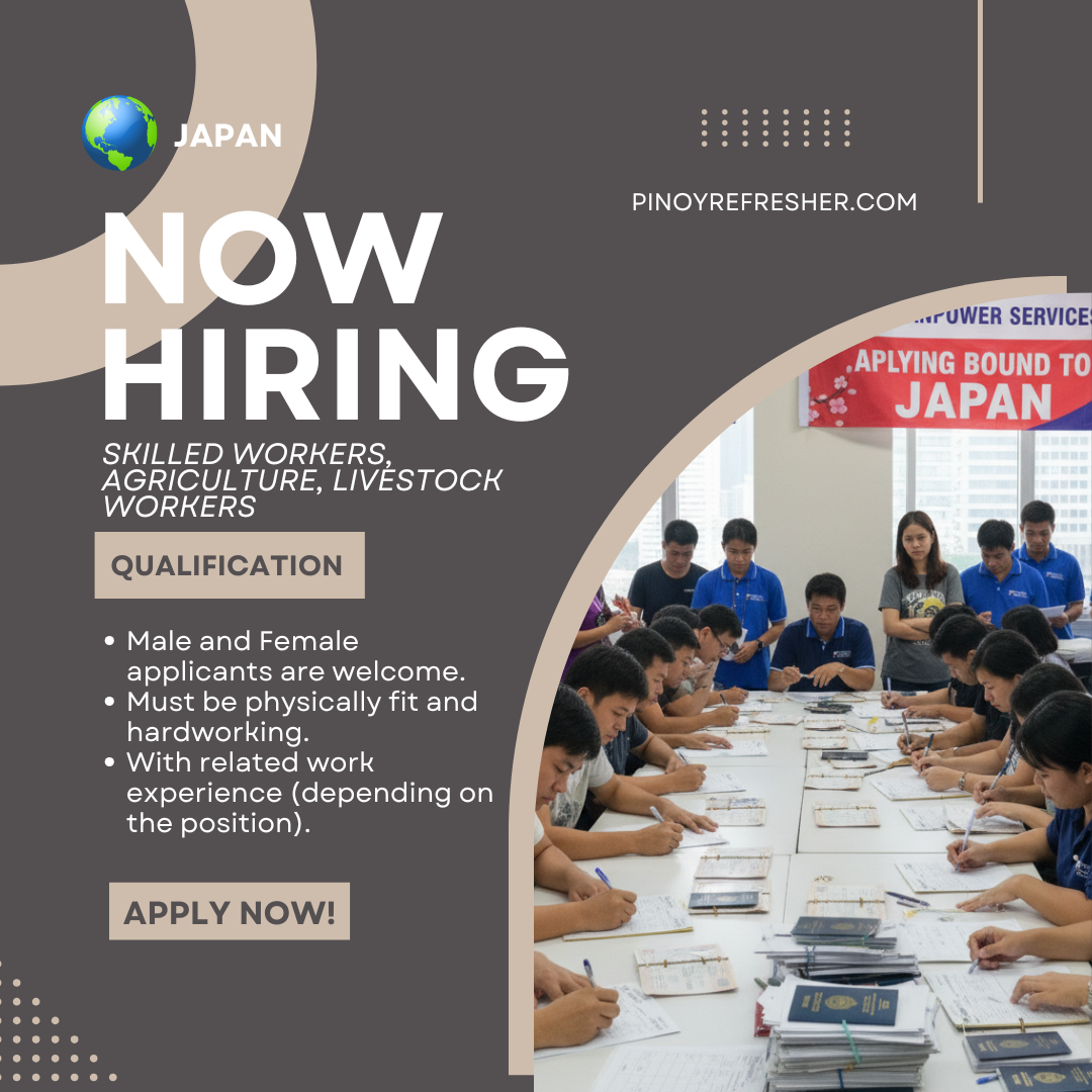 🇯🇵 NOW HIRING: JOBS IN JAPAN – AGRICULTURE, LIVESTOCK, AND SKILLED WORKERS 📍 Job Location: Japan 👷♂️ Agency: Expedite Movers Manpower Services (POEA Licensed Recruitment