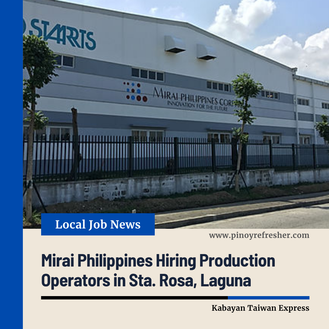 Sta. Rosa City, Laguna — Job seekers in the manufacturing sector have a new opportunity as Mirai Philippines announced the opening of positions for Production