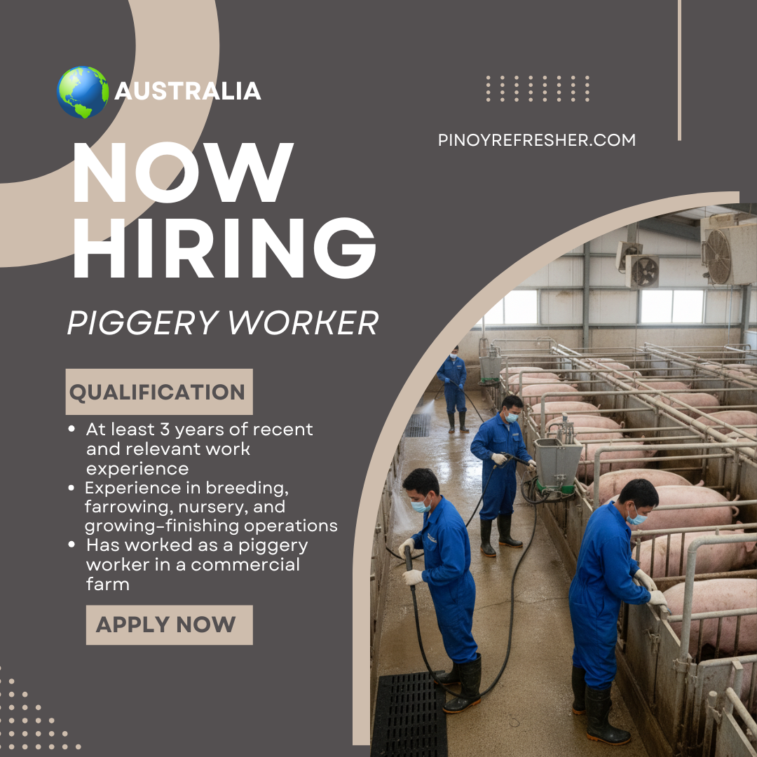 Are you ready to take your agricultural career to the next level? Australia is looking for skilled and passionate Piggery Workers to join commercial farms under a reputable employer. This is your chance to build a stable career abroad and gain valuable international experience!