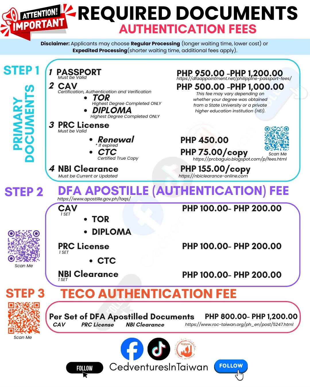 To guide you, here’s a breakdown of the required documents and authentication fees as shown in the infographic below: