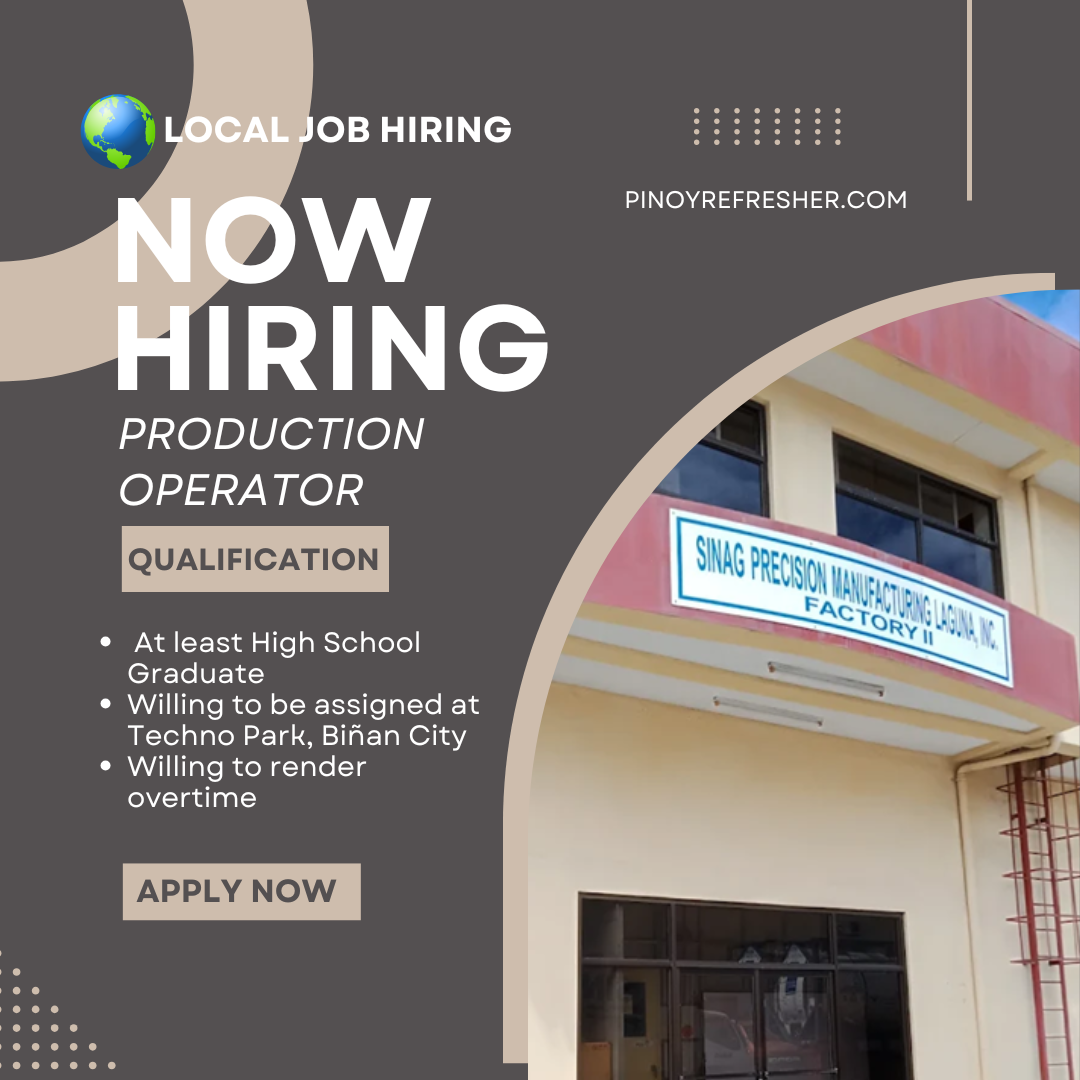 ⚙️ HIRING: Production Operators | Sinag Precision Manufacturing Laguna, Inc.