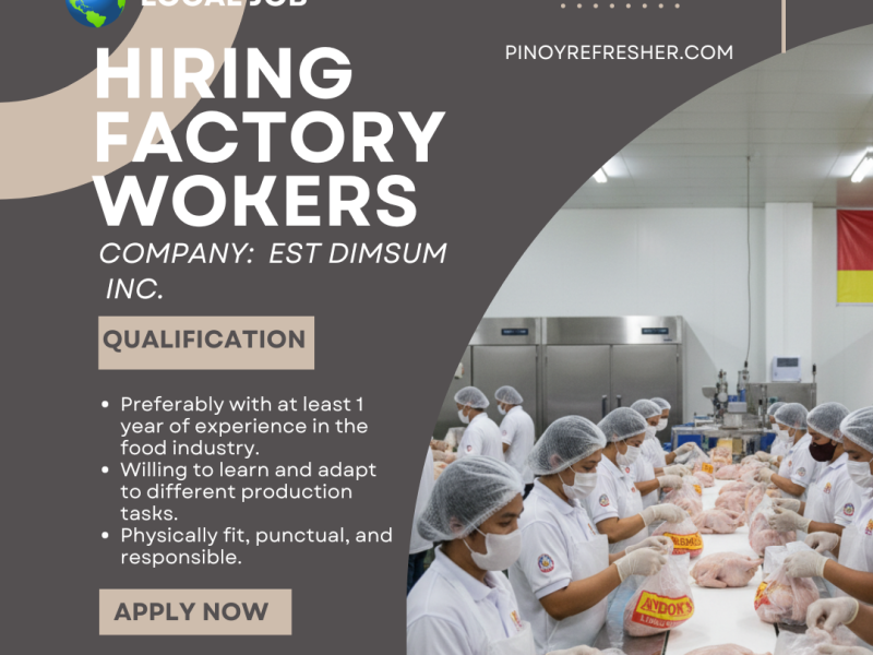 HIRING: Production Workers | EST Dimsum Inc. – Mandaluyong City
