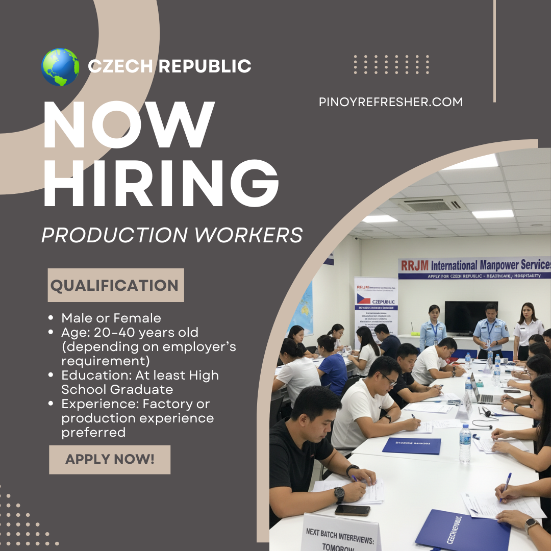 Looking for overseas job opportunities in Europe? RRJM International Manpower Services, Inc. is now accepting applicants for various positions in the Czech Republic!