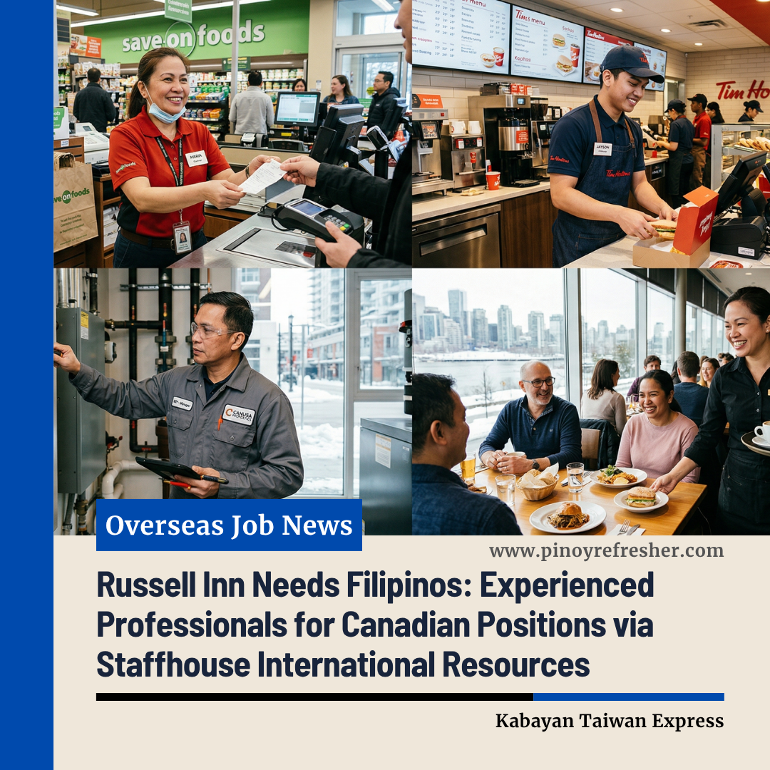 Manila/Cebu, Philippines — Russell Inn, a reputable hospitality and property management establishment in Canada, is now hiring Filipino professionals through Staffhouse International Resources. This international recruitment drive offers qualified candidates the opportunity to advance their careers abroad in a dynamic and service-oriented environment.