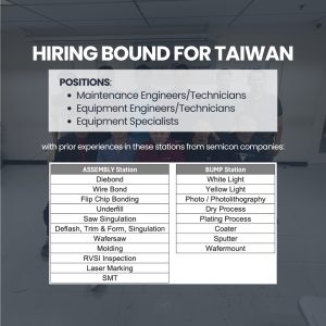 Semiconductor Engineers & Technicians Hiring for Taiwan | Manpower Pooling