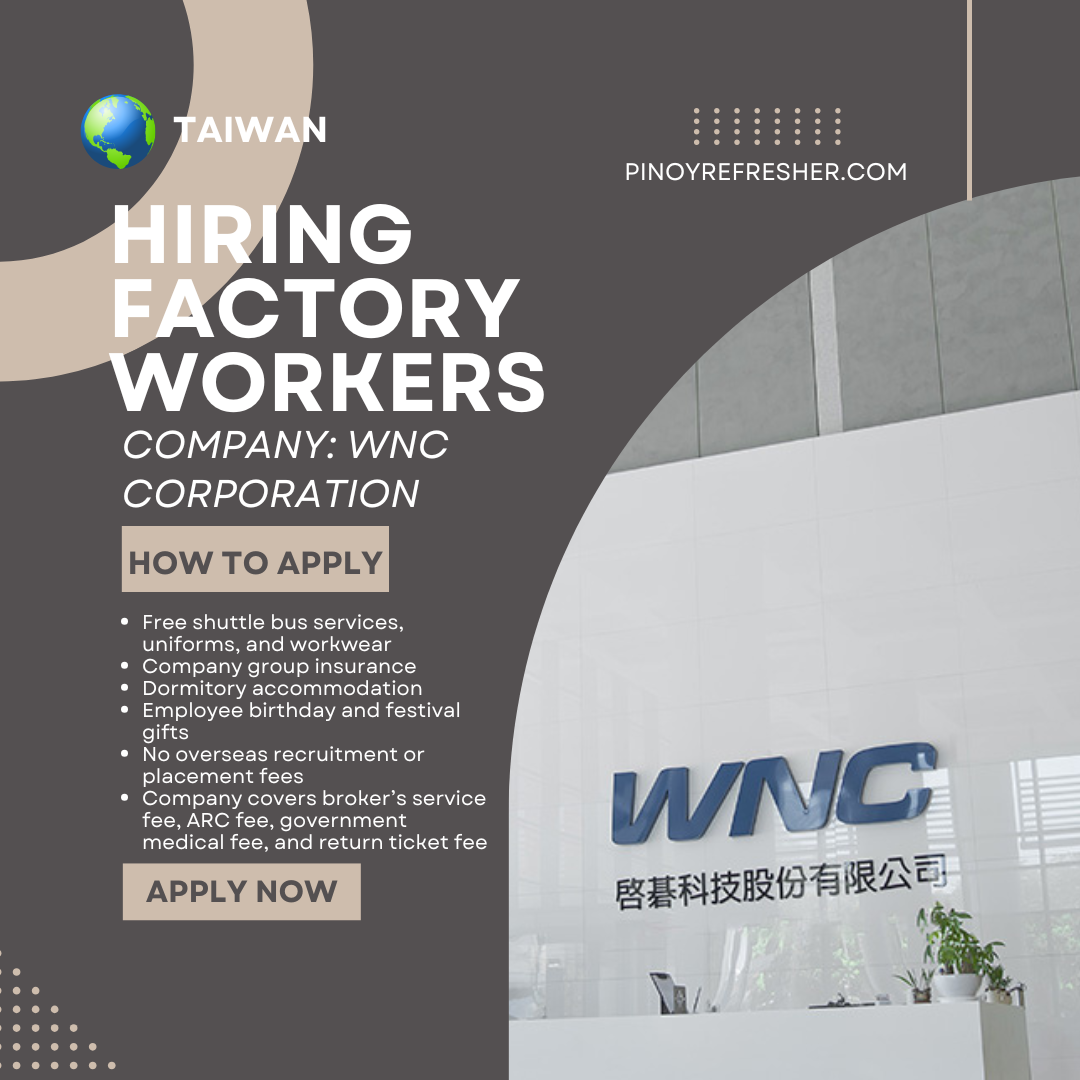 WNC Corporation is excited to announce career opportunities for skilled male workers! If you are dedicated, hardworking, and seeking a rewarding career abroad, this is your chance to join a reputable company that values employee welfare and professional growth.