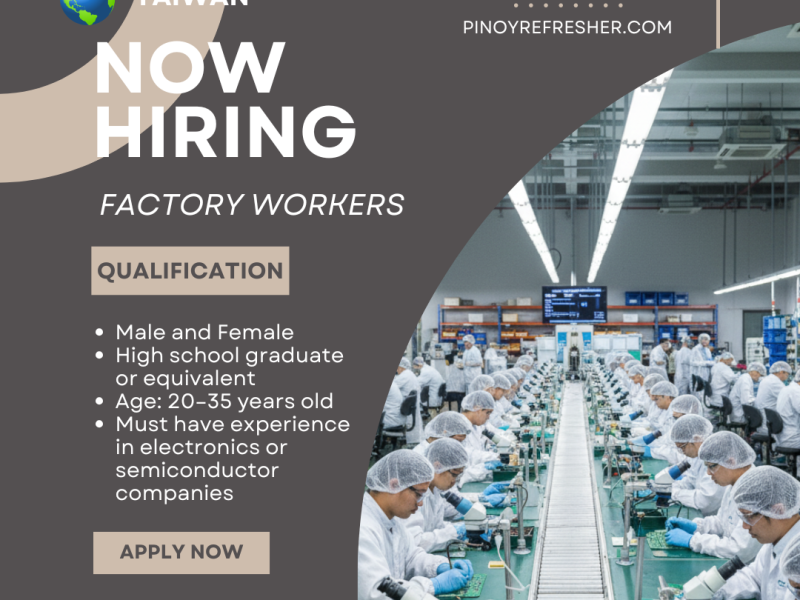 Salary: Competitive NTD 28,590 (~PHP 54,000+) per month