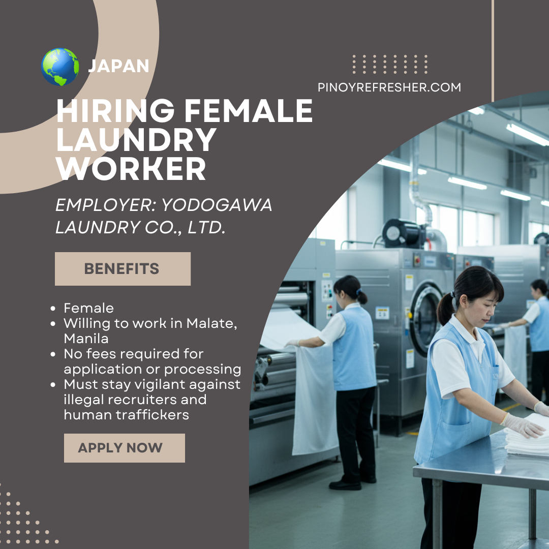 🔥 Urgent Hiring Alert: Female Laundry Worker Needed in Malate, Manila! Mission Way Manpower Services, Inc. is urgently hiring a Female Laundry Worker for a