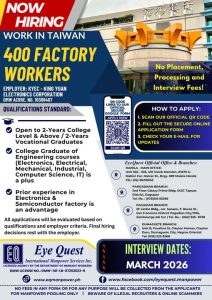 Looking for a stable and rewarding job abroad? KYEC – King Yuan Electronics Corporation, a leading electronics company in Taiwan, is urgently hiring 400 factory workers to join their dynamic team. Best of all, there are no placement, processing, or interview fees!