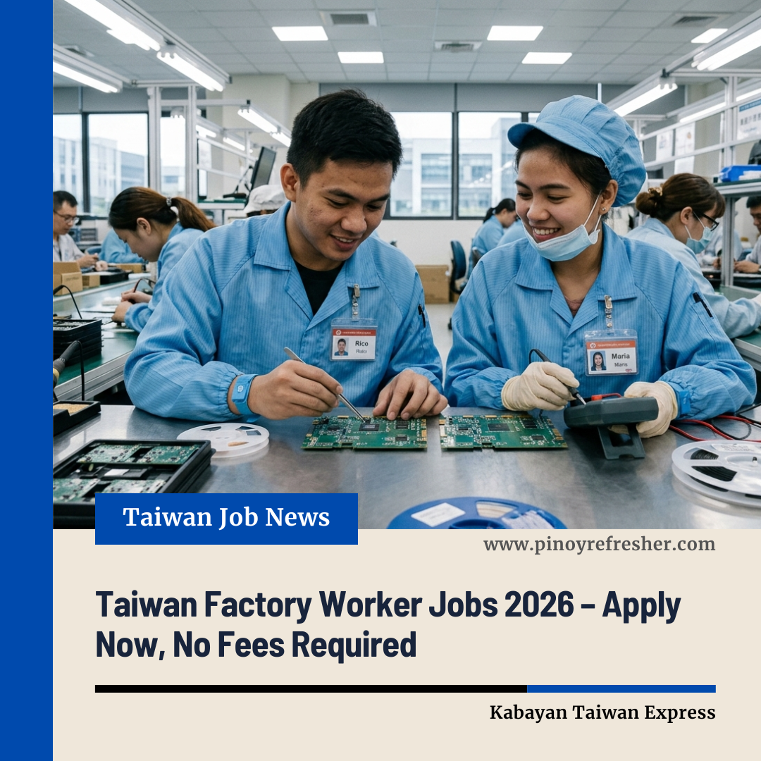With Taiwan continuing to be a top destination for skilled Filipino workers, this urgent hiring presents a valuable opportunity to gain international experience and stable employment abroad 🌏✨. Interested applicants are encouraged to apply as soon as possible.