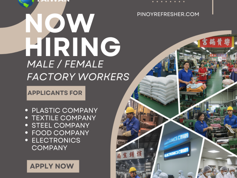 WE’RE URGENTLY HIRING ! LOOKING FOR A MALE FACTORY SKILLED WORKER BOUND FOR TAIWAN 📣📣📣