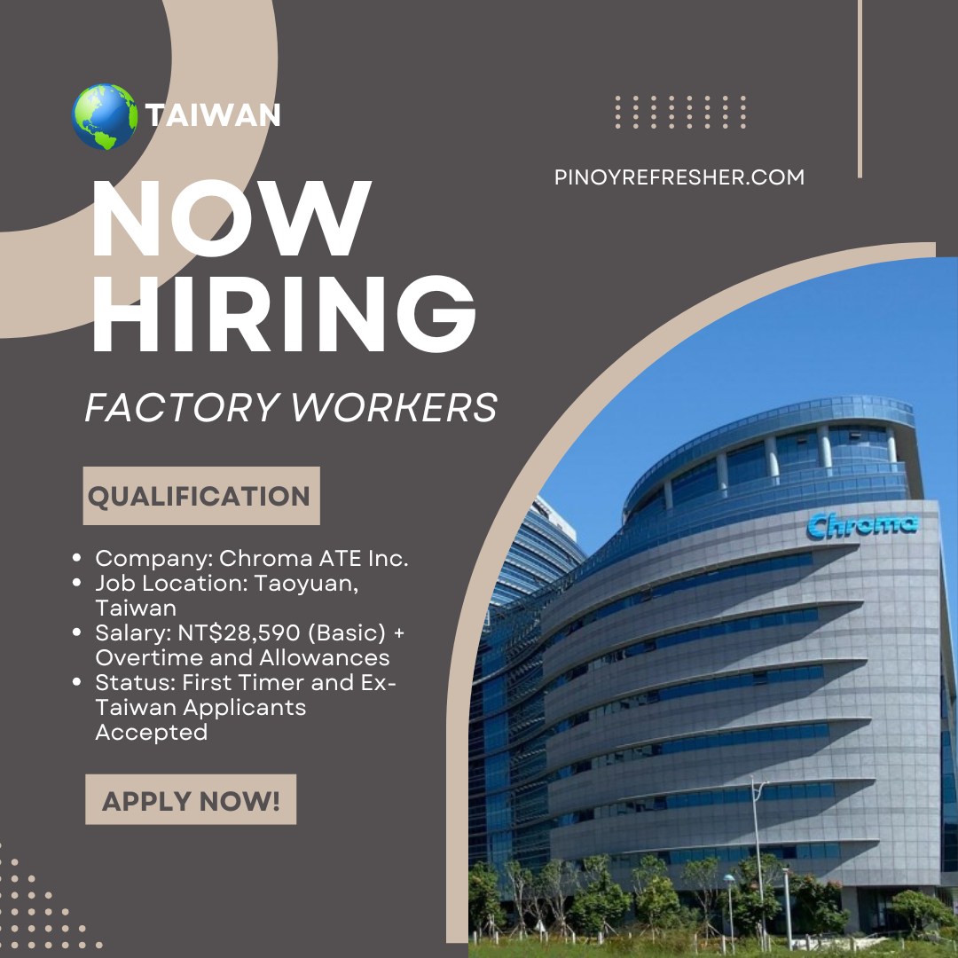 🇹🇼 URGENT HIRING: FACTORY WORKERS FOR CHROMA ATE INC. – TAIWAN