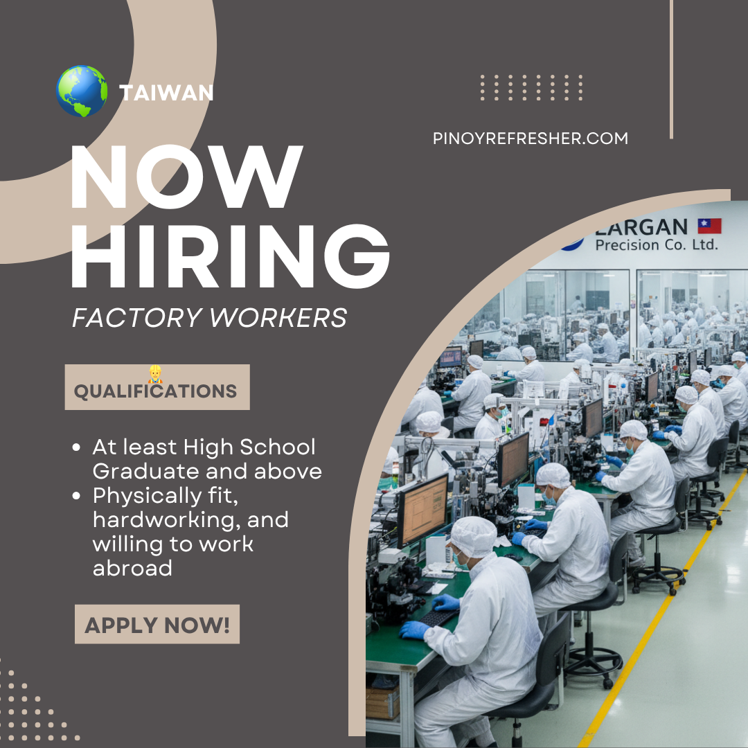 🇹🇼 HIRING FACTORY WORKERS FOR TAIWAN