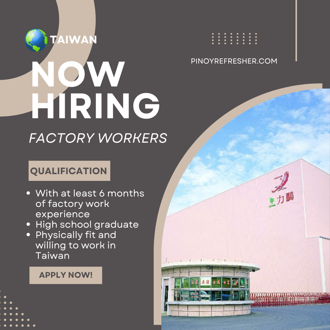 ๐น๐ผ HIRING: Factory Workers for Taiwan (Textile Company)