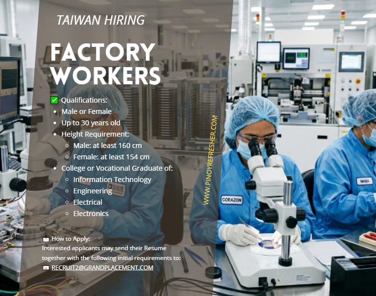 ✨ HIRING FACTORY WORKERS FOR TAIWAN ✨