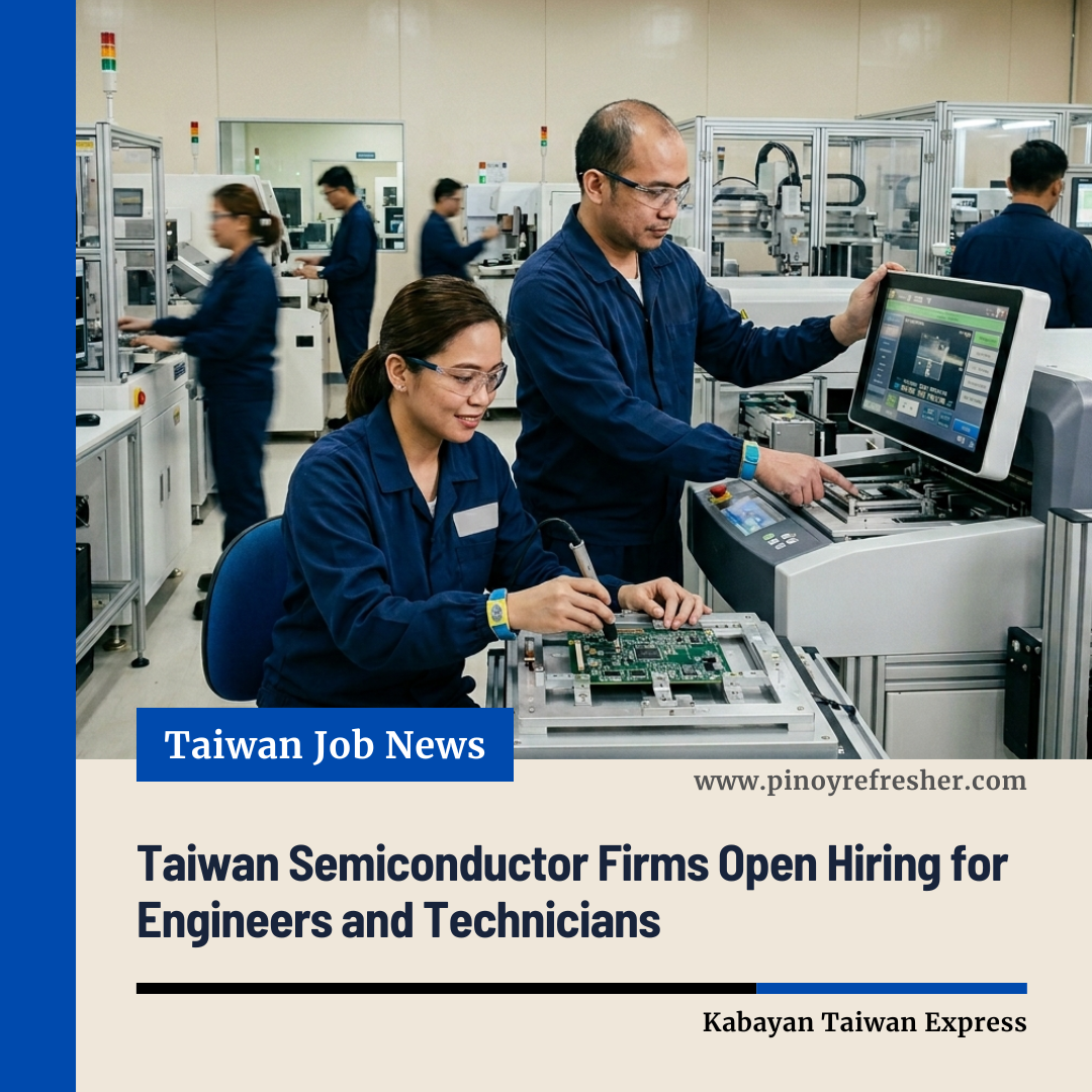 Taiwan, widely recognized as a global hub for semiconductor manufacturing, continues to attract skilled workers from around the world. This latest recruitment drive gives qualified Filipino applicants the chance to gain international experience, enhance technical expertise, and build long-term careers in a highly competitive industry.