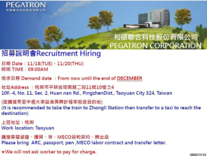 🇹🇼 Pegatron Corporation Launches Recruitment Drive in Taoyuan, Taiwan