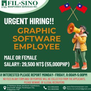 Urgent Hiring Alert: FIL-SINO Manpower Services Inc. Seeks Graphic Software Employees for Taiwan