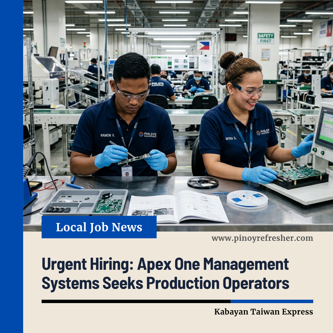 Batangas, Philippines — Apex One Management Systems, a leading manufacturer of ophthalmic (eyeglass) lenses, is urgently hiring Production Operators to support its expanding operations in the optical manufacturing sector.
