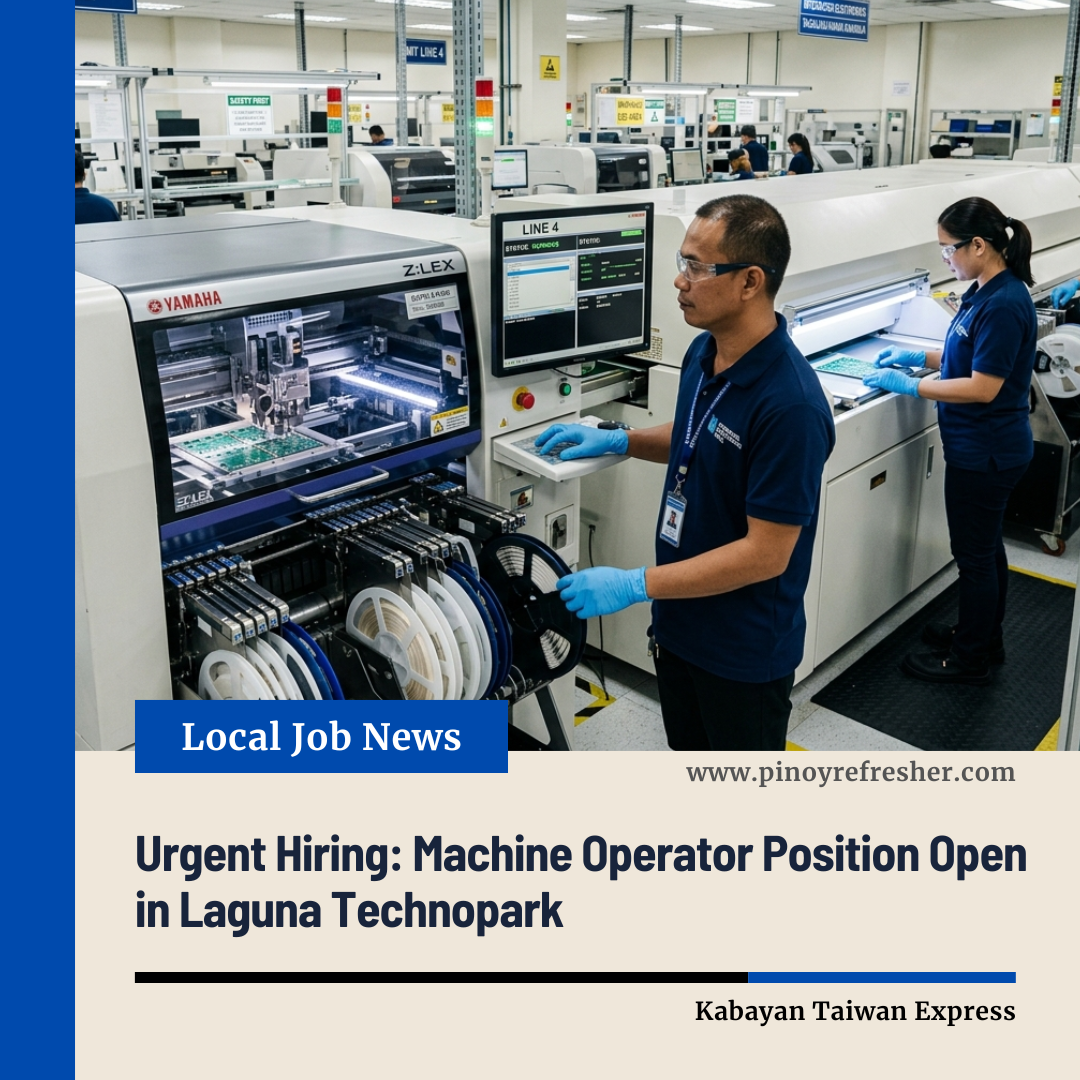 Urgent Hiring: Machine Operator Position Open in Laguna Technopark