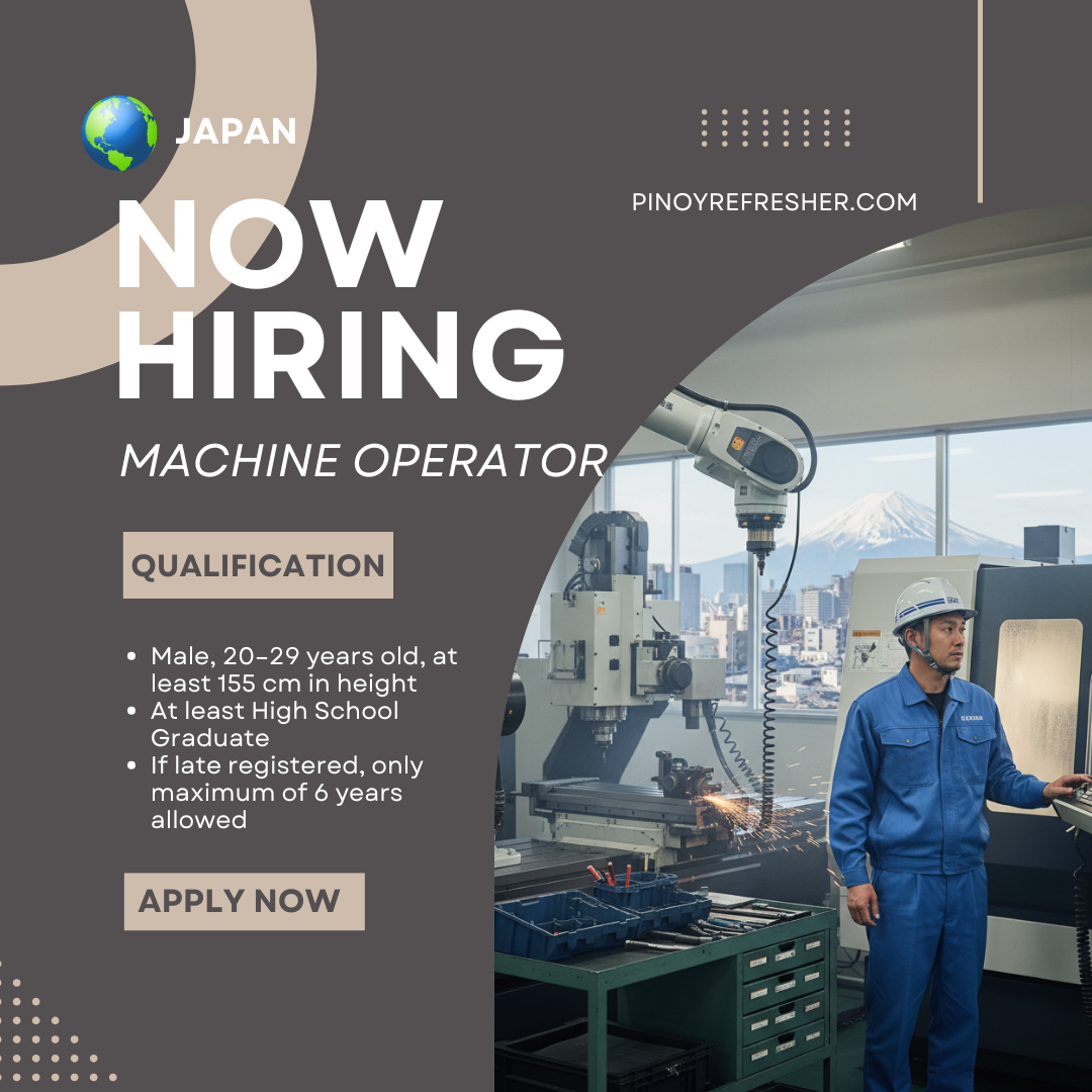 ๐Ÿ‡ฏ๐Ÿ‡ต URGENT HIRING!!! โ€“ MACHINE OPERATORS for JAPAN