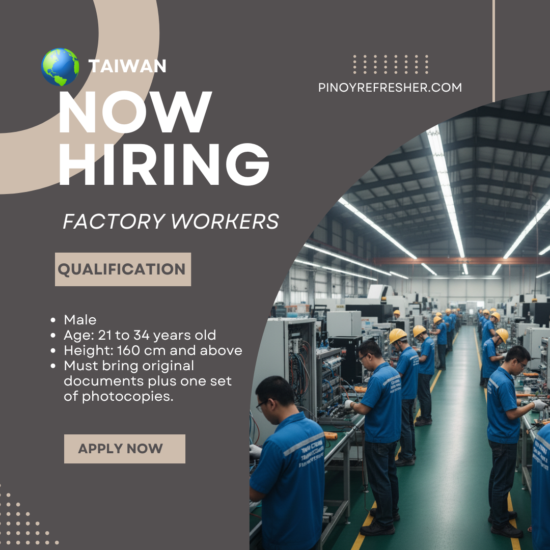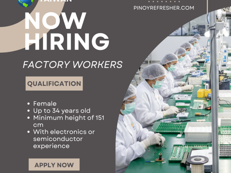 Now Hiring: Factory Workers for Taiwan (Male Applicants Only – No Tattoo Requirement)