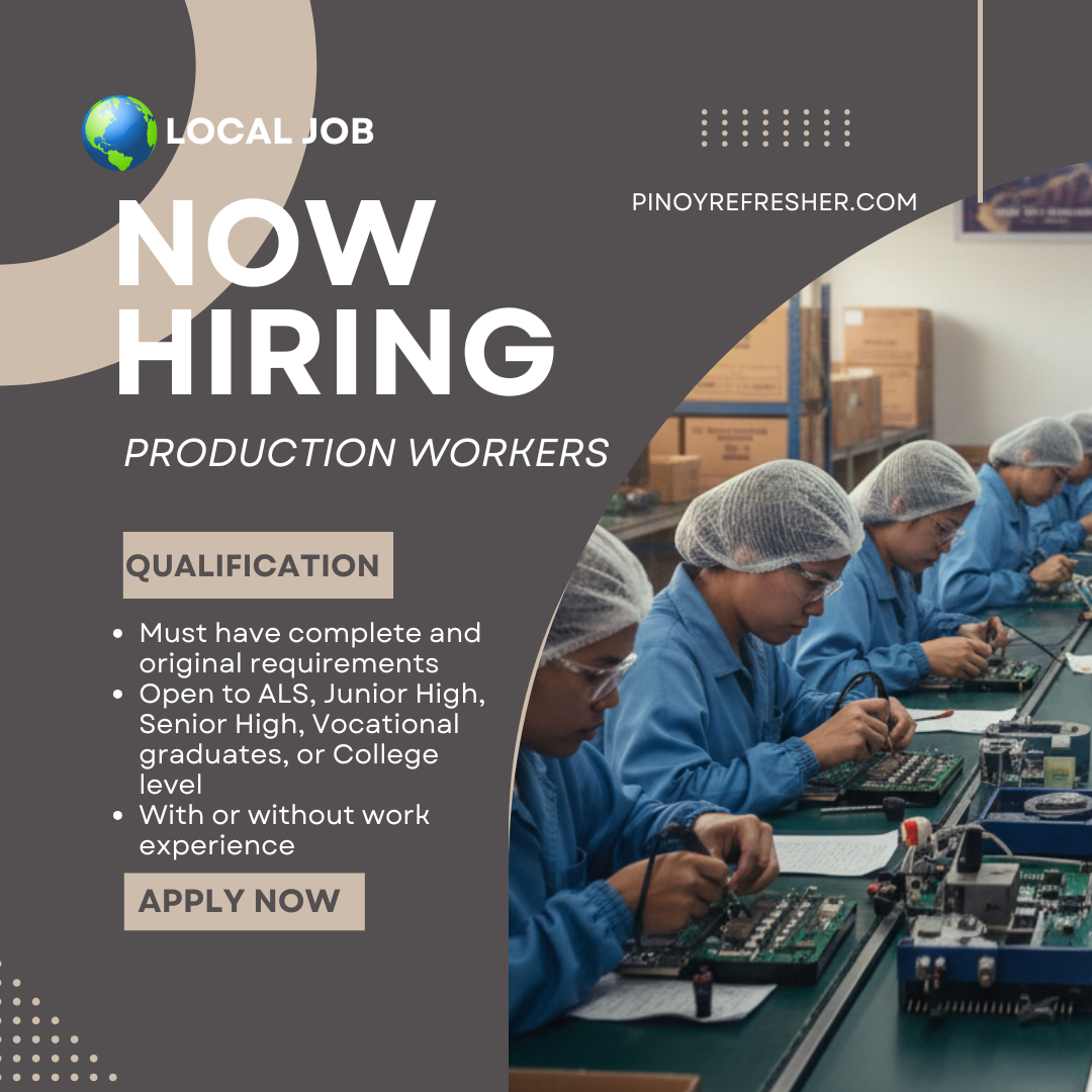 Sygma Human Resource Management Services is urgently looking for Production Operators to join their team in Dasmariñas, Cavite. This is a great opportunity for individuals eager to start working immediately — hiring and processing take only one day!
