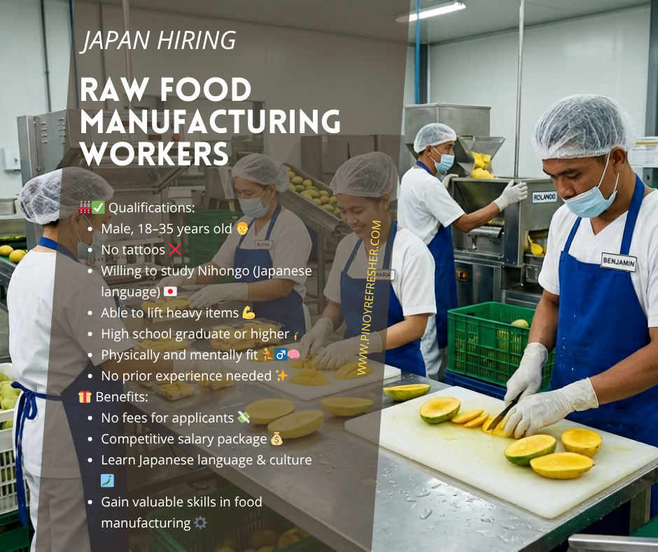 Raw Food Manufacturing Workers Needed (Bound for Japan)! 🍎πŸ₯¦πŸ—