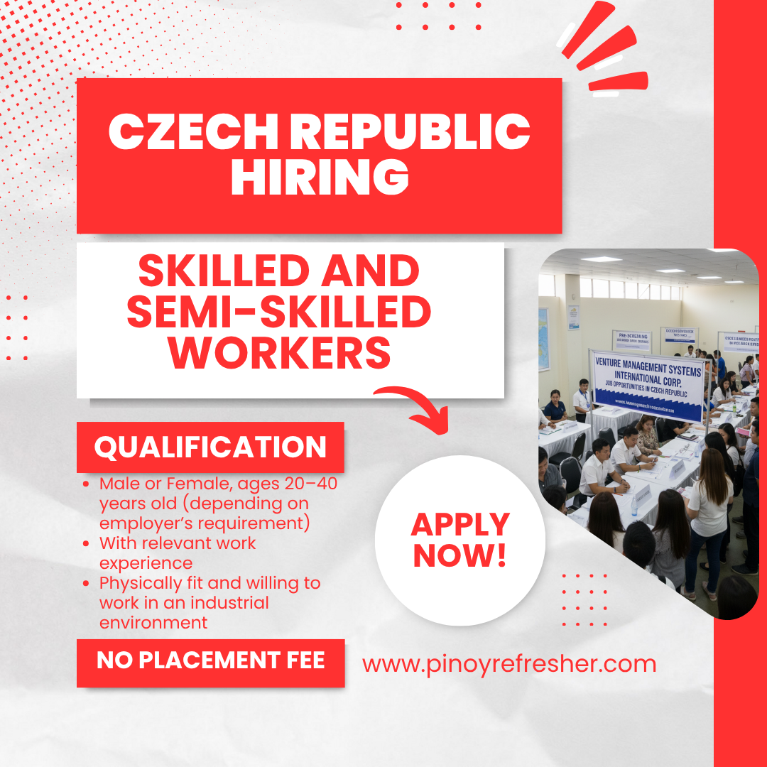 Start your overseas career in Czech Republic, one of Europe’s most stable industrial economies! Venture Management Systems International Corp. is now accepting applicants for various positions under its accredited principal Grapecare Limited.