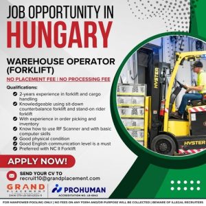 Warehouse Operator (Forklift) Job Hiring in Hungary – Apply Now | Grand Placement
