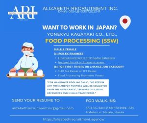 Are you looking to work abroad and gain international experience? Elizabeth Recruitment Inc. is now offering a rewarding opportunity for male and female applicants to work in Japan in the Food Processing (SSW) industry. This is a great chance to build your career, improve your livelihood, and experience working in a dynamic environment.
