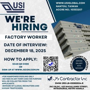 US Contractor Inc. is currently hiring Factory Workers for Universal Global Scientific Industrial Co., Ltd. (USI) in Nantou, Taiwan. This is your chance to be part of a growing organization committed to excellence and fair employment practices.