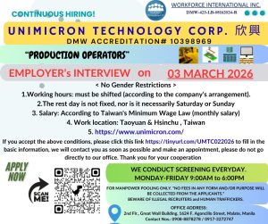 Start your overseas career with a trusted Philippine recruitment agency and a world-class Taiwanese company!