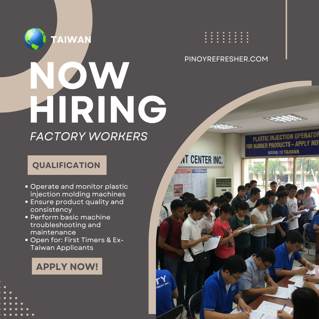 🇹🇼 Urgent Hiring: Female Production Operators Bound for Taiwan! 💼 No Placement Fee | Apply Now and Start Your Overseas Career City Employment Center Inc.