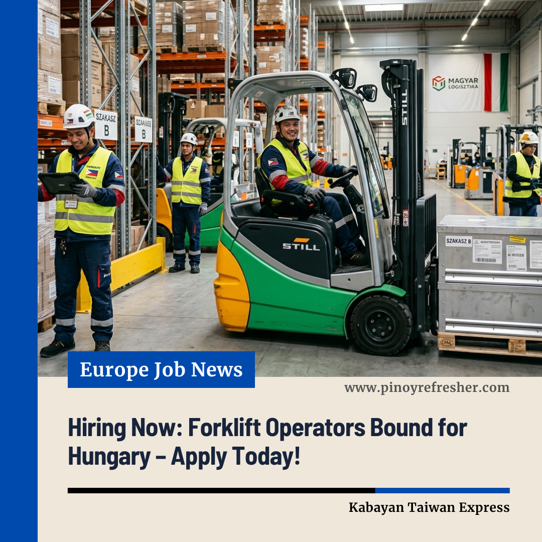 🇭🇺 Hiring Now: Forklift Operators Bound for Hungary – Apply Today! 🚜 A new overseas job opportunity is now open for skilled Filipino workers as